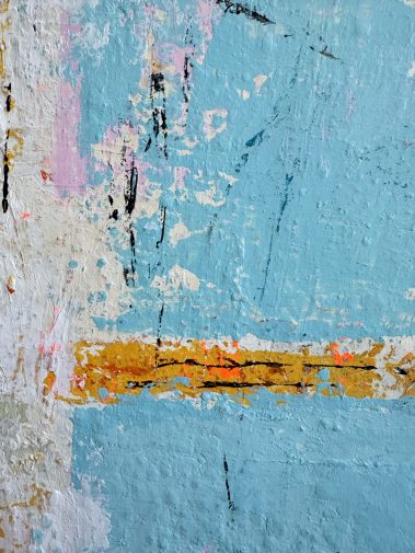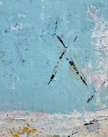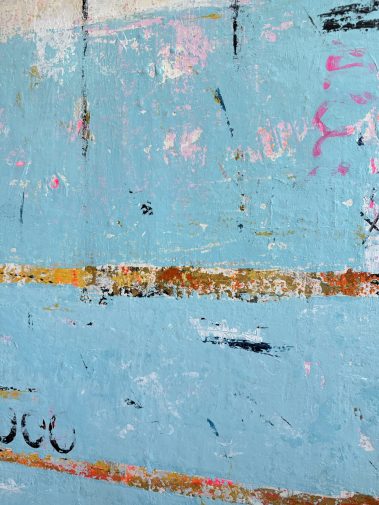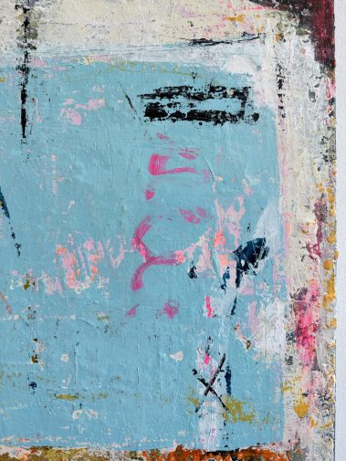 Built in gentle neutrals with undercurrents of soft blue and weathered beige, the surface is rich in layered texture and softened edges. There are visible pauses, subtle shifts, and unfinished lines, echoing the unpredictable, imperfect beauty of human closeness.