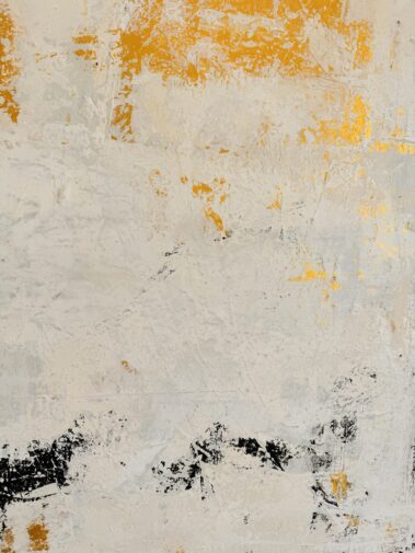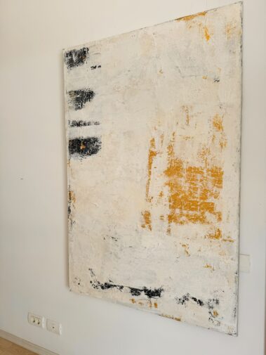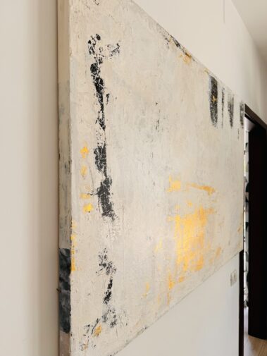 “Meet Me in the Middle”, by Flavia Birsan, 150×100 cm, is a metamorphosis that reflects my own journey through the years. The painting is highly textured and has a multitude of white, creamy and grey shades. The blocks of color are like whispers of memories, leaving room for interpretation. The artwork has painted edges and is a ready to hang piece.