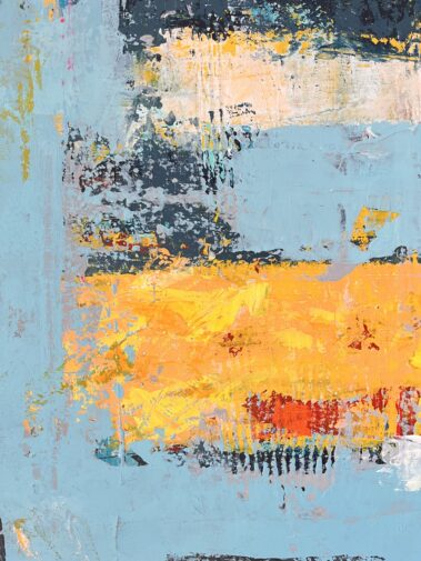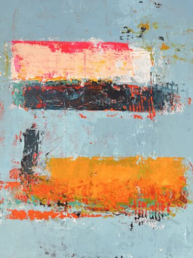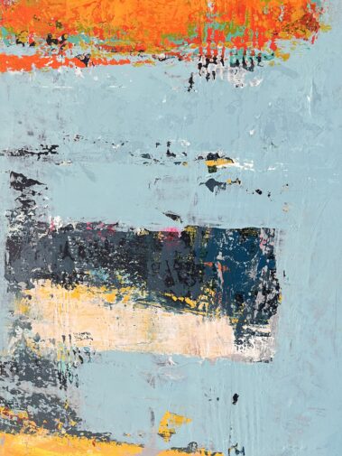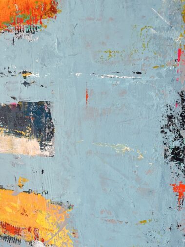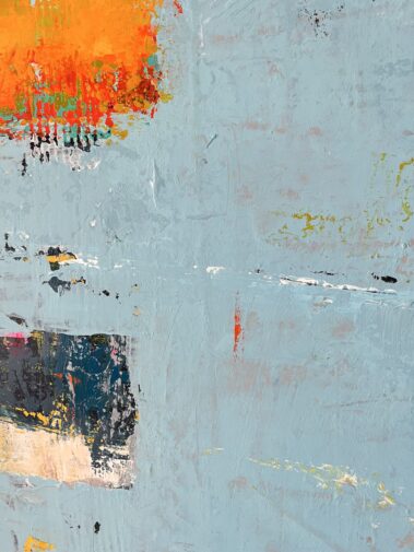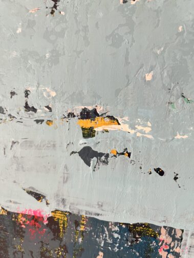 This title, combined with the heavily textured painting, leaves room for interpretation. The mood of the canvas speaks about the passage of time, about the beautiful imperfections it leaves on us and the objects that surround us.